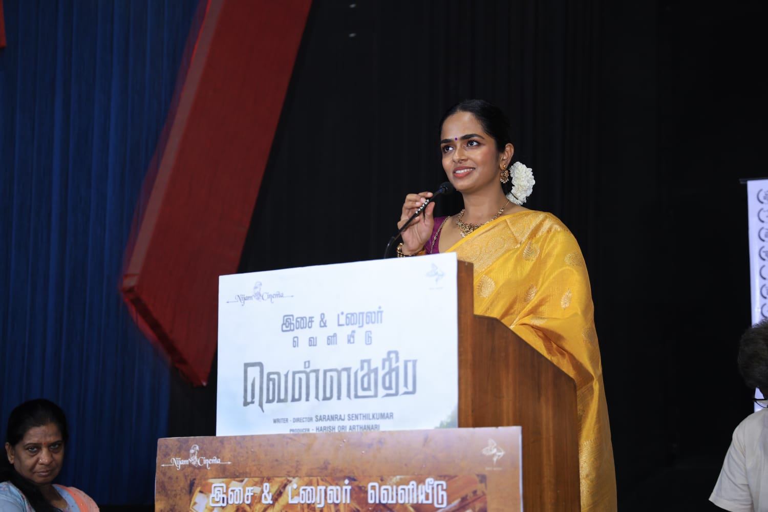 நிஜம் சினிமா தயாரிப்பில் சரண்ராஜ்செந்தில்குமார் இயக்கத்தில் ஹரிஷ் ஓரி, அபிராமி போஸ் நடிப்பில் உருவாகியுள்ள படம் ‘வெள்ளகுதிர’. இம்மாத இறுதியில் வெளியாக இருக்கும் இந்தப் படத்தின் இசை வெளியீட்டு விழா இன்று சென்னையில் நடைபெற்றது