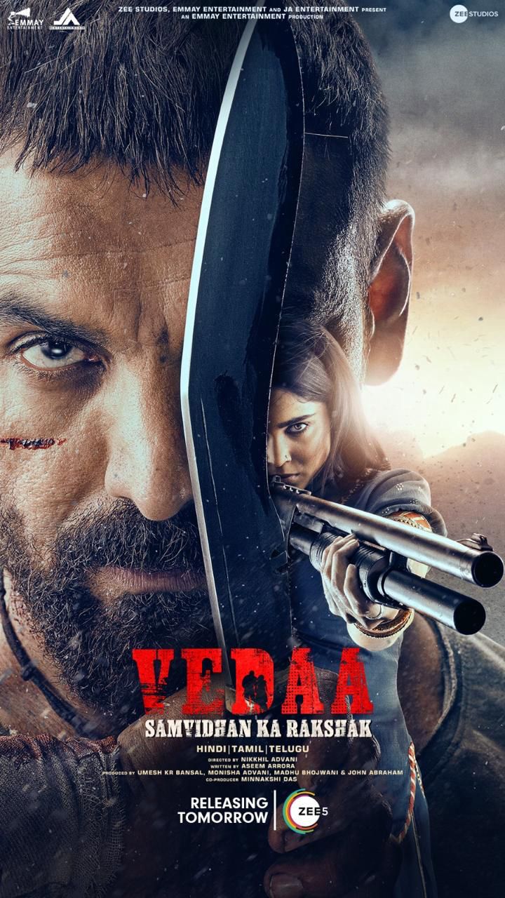 நிகில் அத்வானியின் இயக்கத்தில், வேதா, சம்விதன் கா ரக்ஷக், திரைப்படத்தில் தீவிரமான ஆக்ஷனுடன் ஒரு தீவிரமான சமூகச் செய்தியும் சிறப்பாக இணைக்கப்பட்டுள்ளது. இந்த தசராவில், பார்வையாளர்கள் அக்டோபர் 10 முதல் ZEE5 இல் வேதா, சம்விதன் கா ரக்ஷக் படத்தினை இந்தி, தமிழ் மற்றும் தெலுங்கில் கண்டுகளிக்கலாம்.